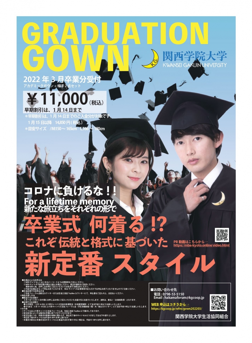 ニュース 22年3月 卒業式用ガウン販売のお知らせ Mar 22 Graduation Ceremony Graduation Gown Sales Started 関西学院大学生活協同組合
